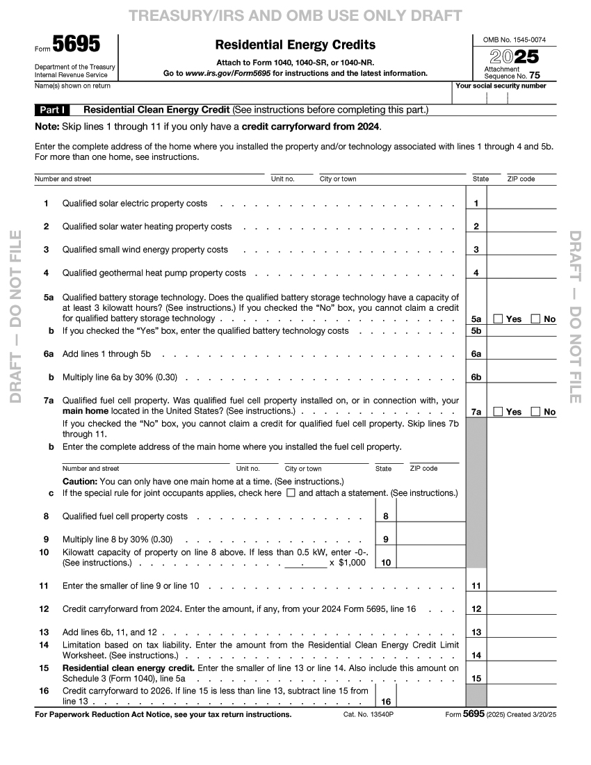 2025 Form 5695 for solar hybrid air conditioners