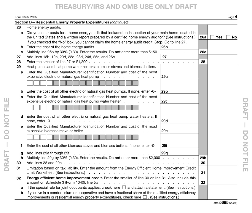 If your Energy Efficient Home Improvement Credit Limit Worksheet (yet another one beyond the scope to discuss here) shows a value larger than the 30% shown on line 29e, then that tax credit on Line 32 is all yours!